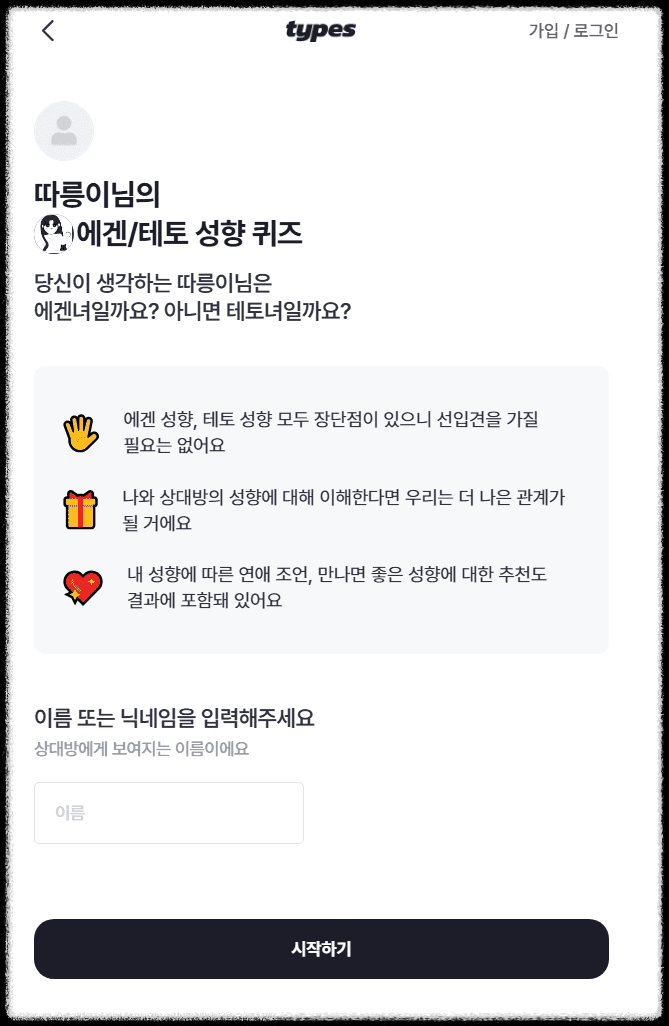 Step 3. 테스트 완료 후 결과 페이지에서 자신의 유형(에겐남, 테토녀 등)을 확인합니다.